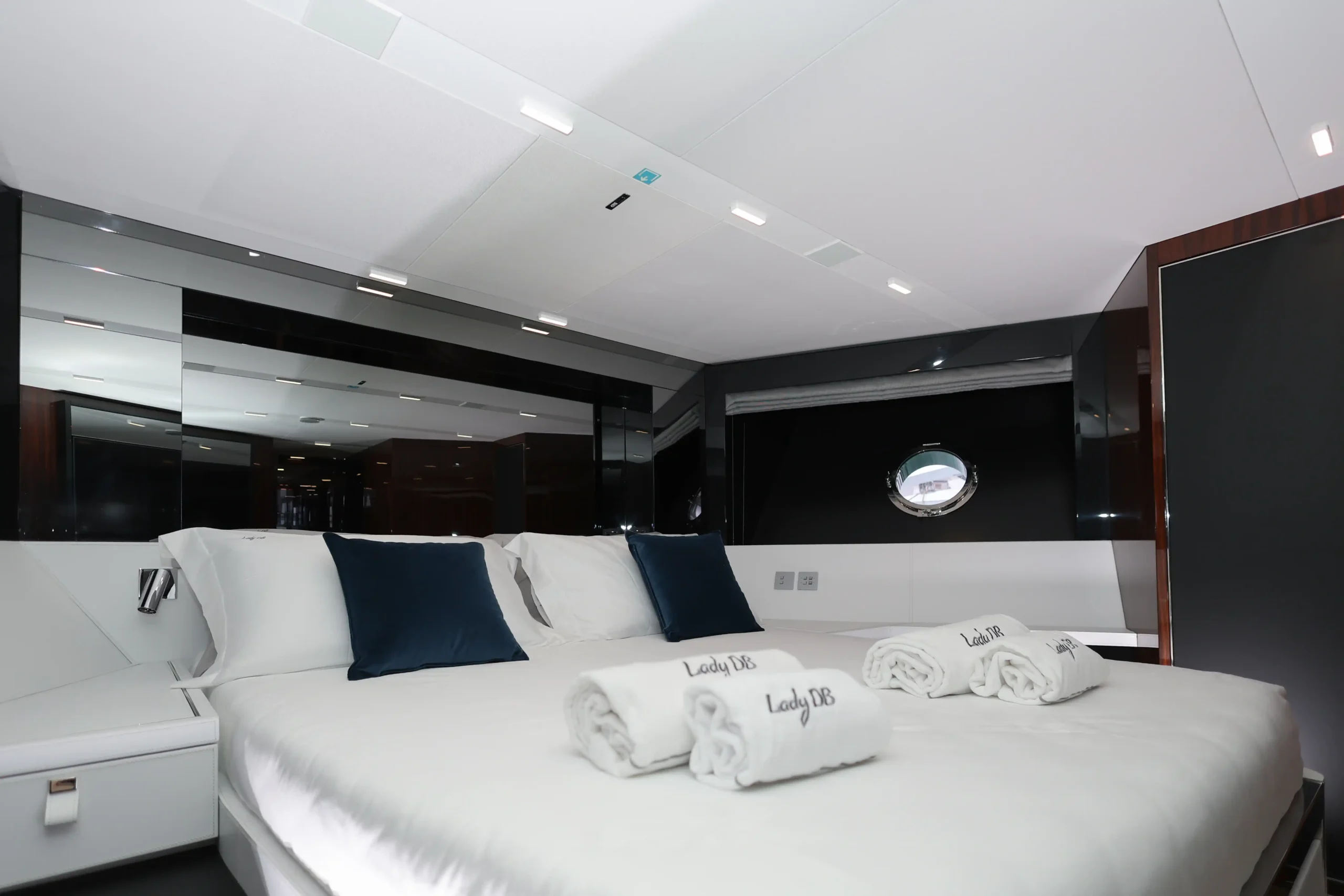 Con quattro cabine elegantemente arredate, LADY DB può ospitare comodamente fino a otto ospiti. Un equipaggio esperto di tre persone, incluso uno chef dedicato, garantisce un servizio attento e personalizzato per offrire un’esperienza a bordo fluida e indimenticabile.