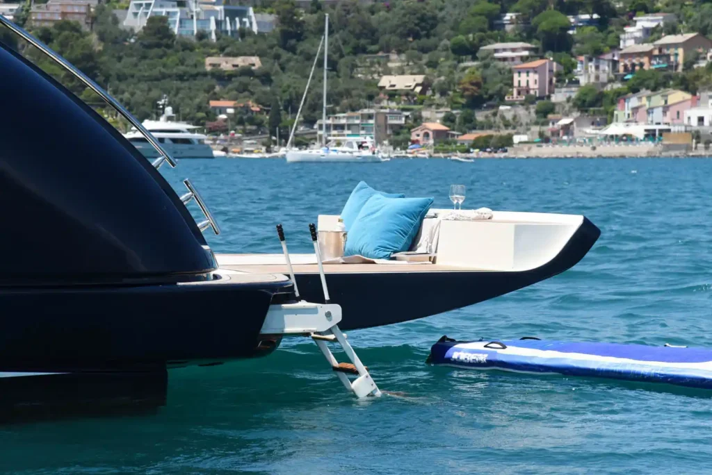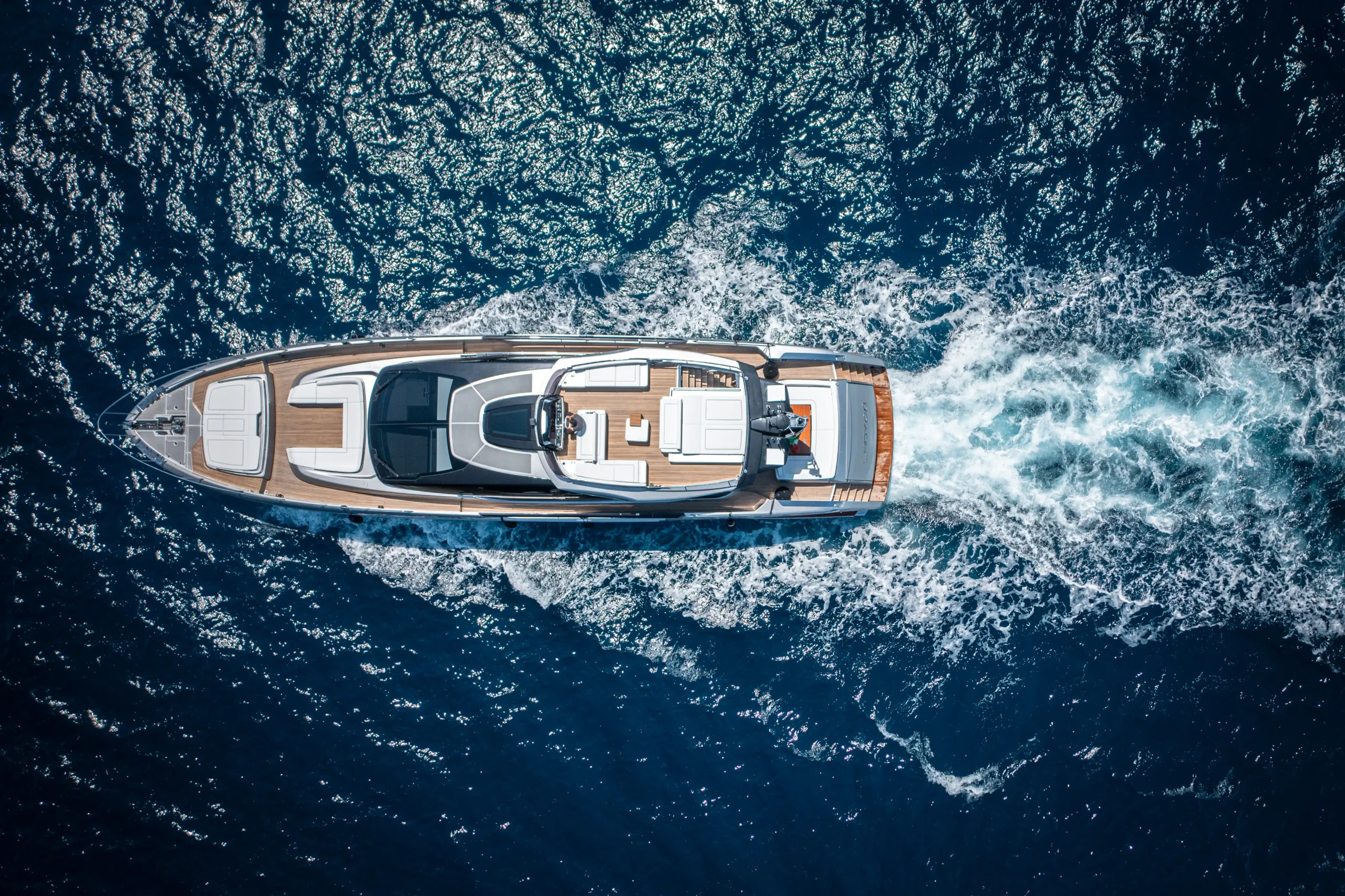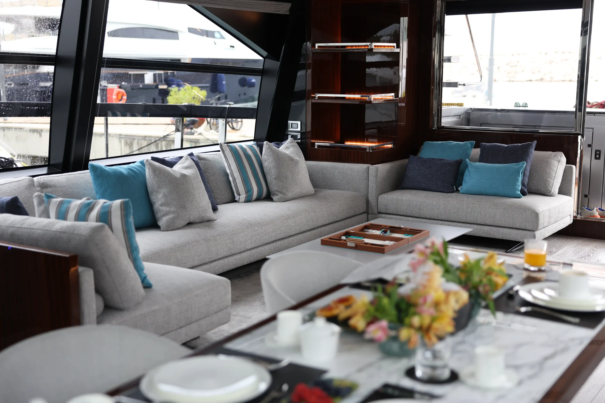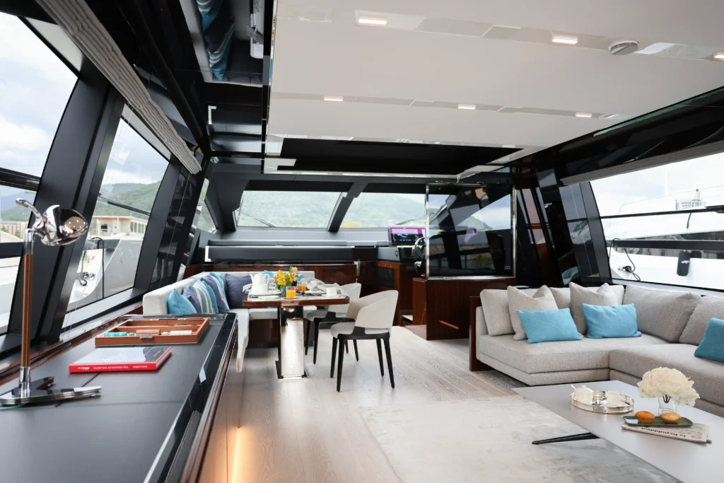 LADY DB vanta una silhouette elegante e dinamica, valorizzata da ampie finestre nel salone e lungo lo scafo, che inondano di luce naturale sia il ponte principale che quello inferiore. Ogni centimetro di spazio esterno è stato progettato con cura per massimizzare comfort e funzionalità. Il ponte di poppa ospita un’elegante area pranzo, mentre il flybridge offre ampie zone relax e sedute, ideali per l’intrattenimento o il riposo.