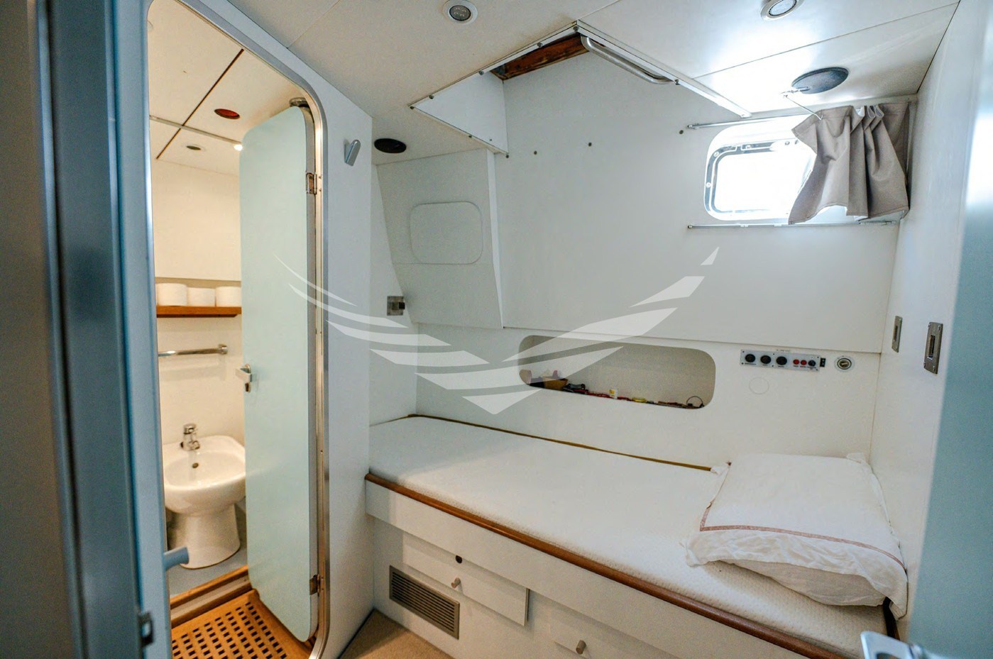 - Sono state smontate tutte le vetrate e, oltre alla sostituzione delle guarnizioni, sono state riapplicate le sigillature perimetrali. Smontate le porte a murata e riverniciate e cambiate le cinghie di movimento, smontato tutto il parabrezza fly e le antenne; passi d’uomo risigillati e guarnizioni sostituite