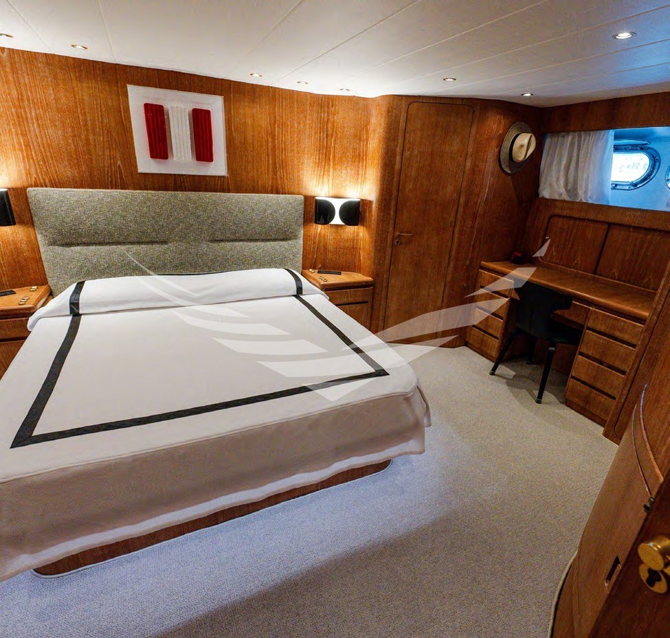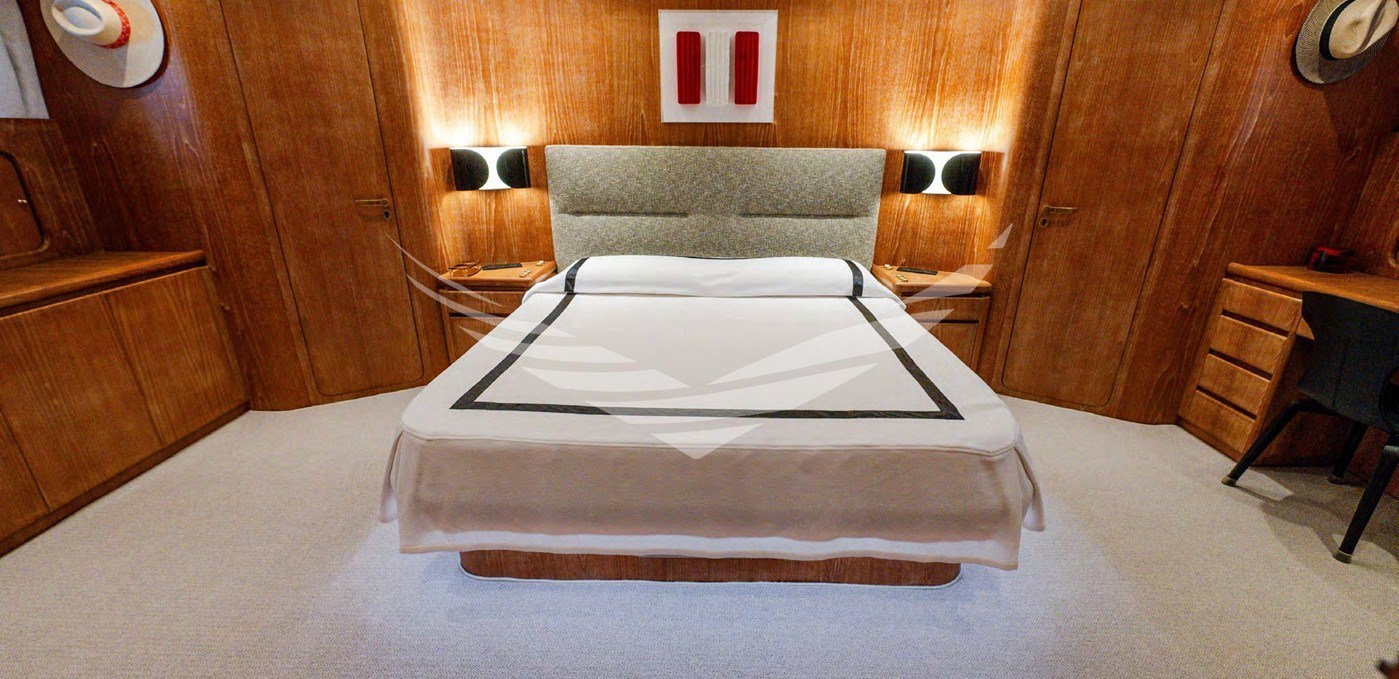 - Rifacimenti Decor interni rifatti nel 2023/24: Cielini cabine, testaletto cabine, Tendaggi cabine, Tendaggi salone, Corridoio e sala pranzo, Tappezzerie sedute, cielini cabina comando, Rifacimento divani salone + Pouf + cuscini decoro, Potrona comando pilot house