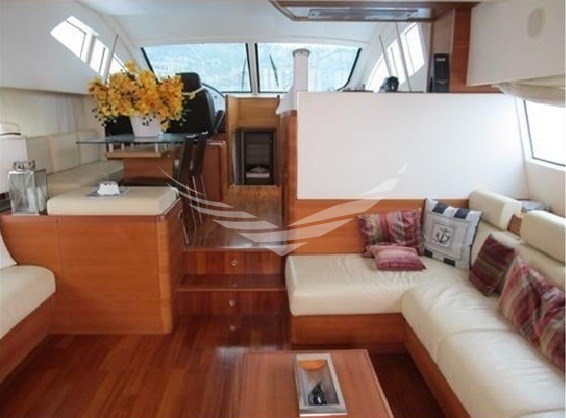 Aria condizionata, BBQ/ Grill, Boiler, Clima reversibile, Impianto acque nere, Pavimento interno in legno, Prese interne 12v, Prese interne 220v, Riscaldamento, Serbatoio Acque Nere, WC marino elettrico.