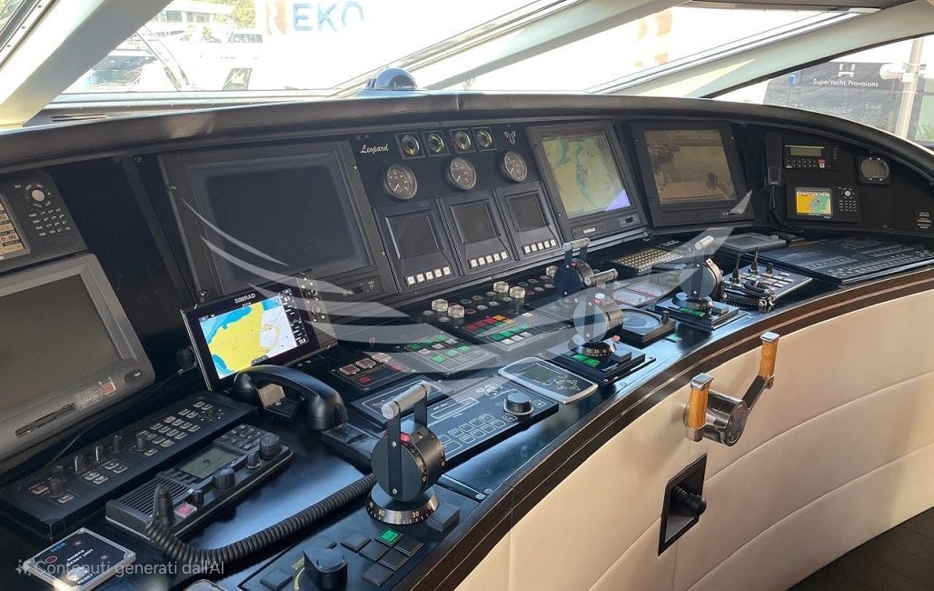 AIS, Angolo barra, Antenna radar, Bussola, Comando motori elettronico, Computer di bordo, Contametri catena, Contamiglia, Display, DSC vhf, Ecoscandaglio, GPS, Log, Luci di navigazione, Pilota automatico, Plotter, Plotter con antenna GPS, Radar, Radio VHF, Sedile Copilota.