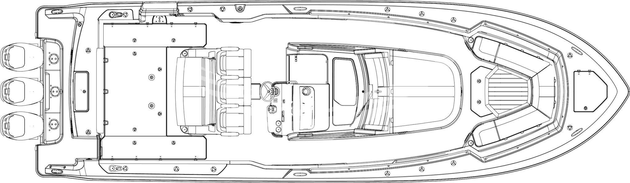 Allarme motore, Allarme sentina, Ancora (in acciaio), Autoclave, Auto-Trim, Batterie, Bitte Abbattibili, Caricabatterie, Doccia esterna, Faro orientabile, Flap elettrici, Lavandino nel Pozzetto, Luci di cortesia, Pompa di sentina automatica, Pompa di sentina elettrica, Pompa di sentina manuale, Presa 220V banchina, Presa acqua banchina, Salpa Ancore Elettrico, Scaletta da bagno, Tavolo pozzetto (e Tavolo prua elettrico), Tromba.