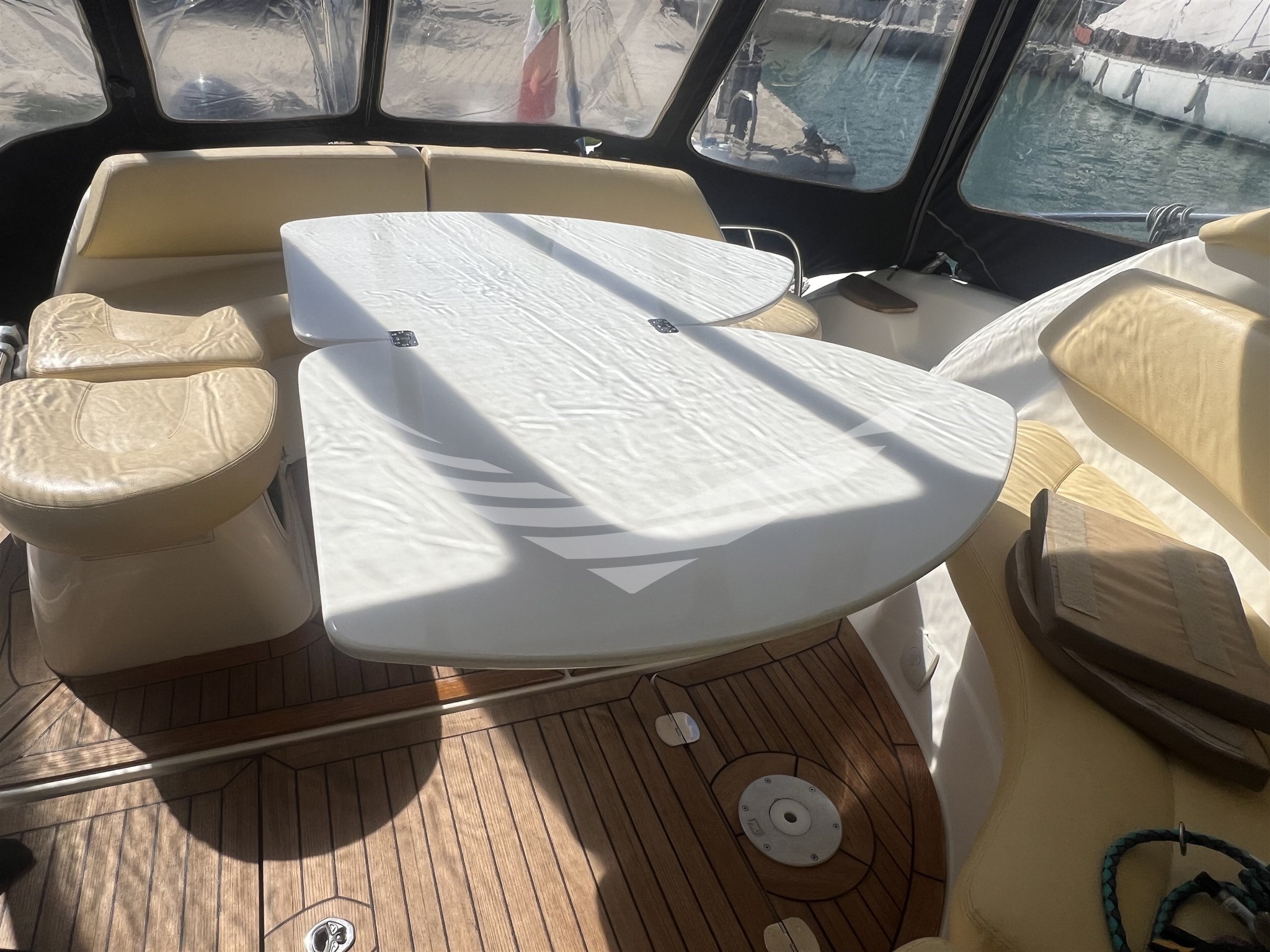 Allarme motore, Allarme sentina, Alternatore, Ancora, Apertura Vano Motore Elettrica, Autoclave, Auto-Trim, Batterie, Caricabatterie, Cavo corrente di banchina, Colorazione speciale, Corrimano, Doccia esterna, Elica di prua - bow thruster, Faro orientabile, Fissaggio dell’ancora, Flap elettrici, Hard top, Impianto antincendio, Lavandino nel Pozzetto, Luci di cortesia, Luci subacquee, Pannelli Solari, Parabordi, Piattaforma, Pompa di sentina automatica, Pompa di sentina elettrica, Pozzetto Teak, Presa 220V banchina, Salpa Ancore Elettrico, Scaletta da bagno, Tavolo pozzetto, Tromba, Winch tonneggio di poppa.