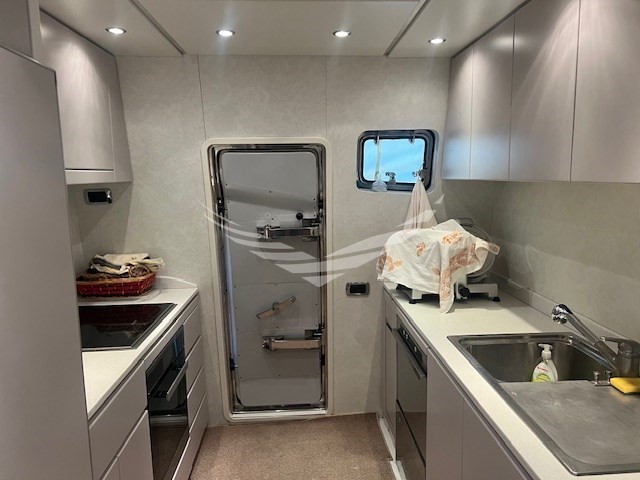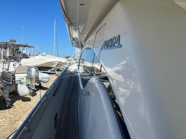 Allarme fumo/gas, Allarme motore, Allarme sentina, Alternatore, Ancora, Autoclave, Autogonfiabile, Batterie, Camminamenti laterali in teak, Caricabatterie, Cavo corrente di banchina, Corrimano, Doccia esterna, Doppia timoneria, Elica di poppa - stern thruster, Elica di prua - bow thruster, Faro orientabile, Flap idraulici, Gruette, Impianto antincendio, Lavaggio catena, Luci di cortesia, Passerella, Piattaforma, Pompa di sentina automatica, Pompa di sentina elettrica, Pompa di sentina manuale, Ponte in teak, Porta ingresso, Porta laterale, Pozzetto Teak, Raddrizzatore, Rollbar, Salpa Ancore Elettrico, Scala reale, Scaletta da bagno, Selle per Tender, Tavolo pozzetto, Tientibene con cancelletti, Tromba, Winch tonneggio di poppa, Winch tonneggio di prua.