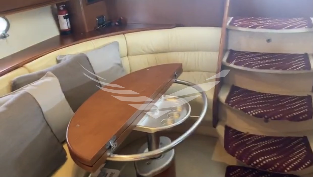 Allarme motore, Allarme sentina, Ancora, Autoclave, Autogonfiabile, Batterie, Caricabatterie, Doccia esterna (calda e fredda), Elica di prua - bow thruster, Flap elettrici, Garage per tender, Indicatori Flaps, Lavandino nel Pozzetto, Luci di cortesia, Passerella, Piattaforma, Pompa di sentina automatica, Pompa di sentina elettrica, Pozzetto Teak, Presa 220V banchina, Raddrizzatore, Rollbar, Salpa Ancore Elettrico, Scaletta da bagno, Tavolo pozzetto, Tavolo Salone Abbattibile, Tromba.
