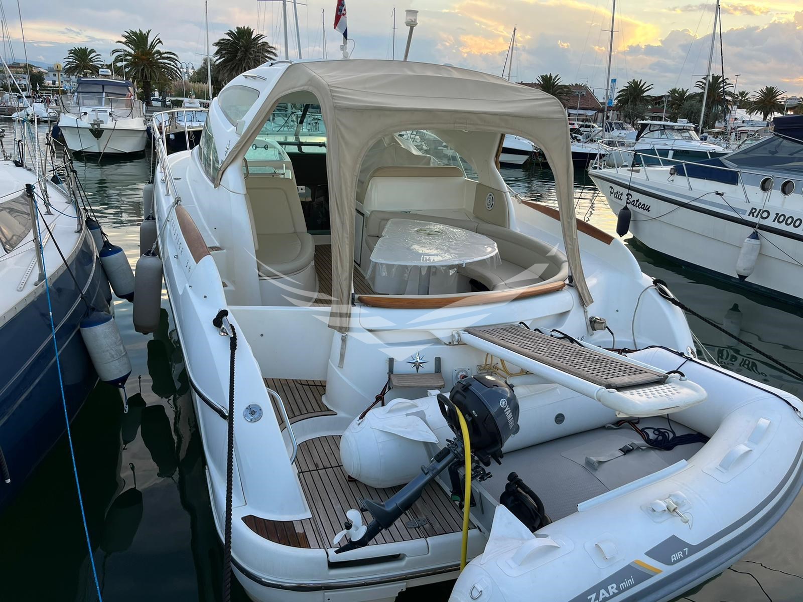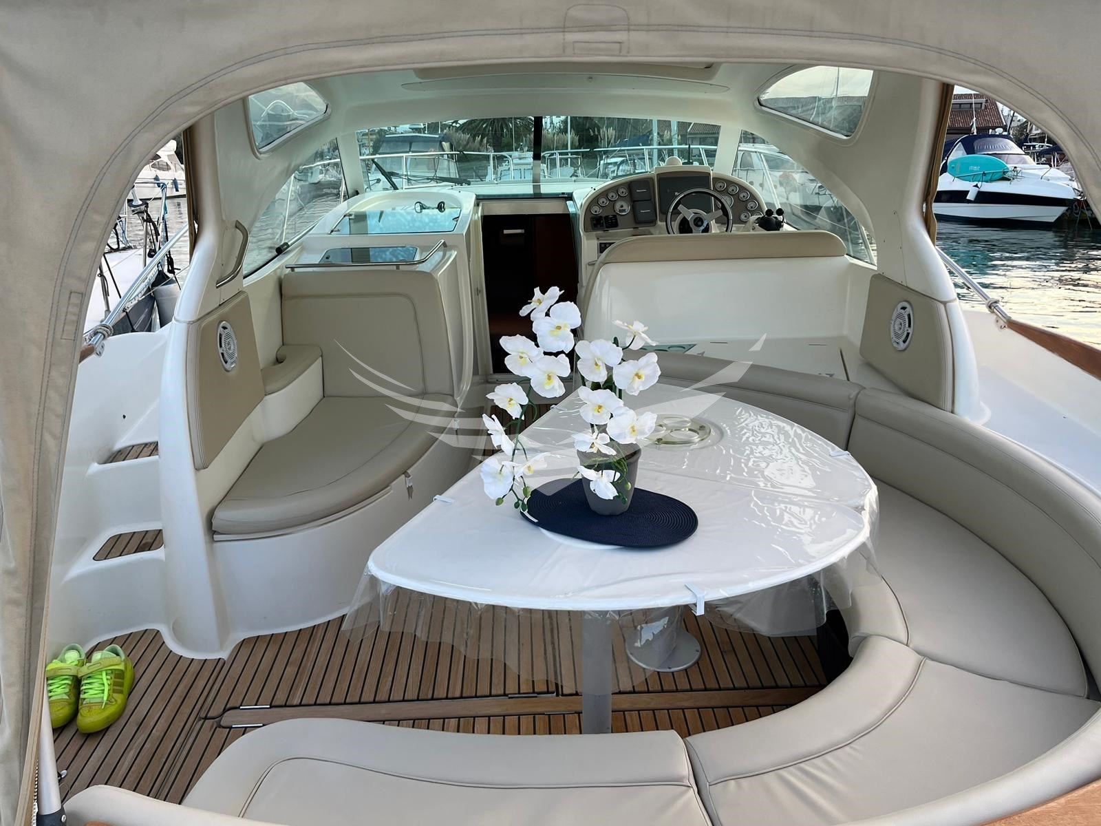Allarme motore, Ancora, Autoclave, Batterie, Caricabatterie, Doccia esterna, Elica di prua - bow thruster, Flap idraulici, Hard top, Lavandino nel Pozzetto, Luci di cortesia, Piattaforma, Pompa di sentina automatica, Pompa di sentina elettrica, Pompa di sentina manuale, Pozzetto Teak, Presa 220V banchina, Presa acqua banchina, Rollbar, Salpa Ancore Elettrico, Selle per Tender, Tavolo pozzetto, Tavolo Salone Abbattibile, Tender, Tromba.