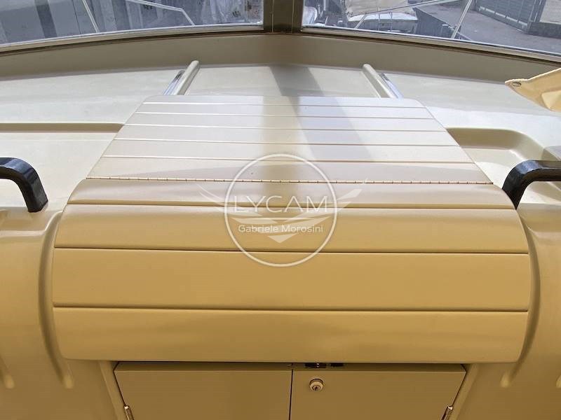 Coperta: ampio pozzetto prendisole di poppa convertibile in dinette e prendisole; Postazione di pilotaggio a dritta e sedile co-pilota a sinistra; Prendisole di prua.