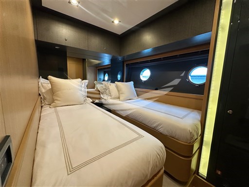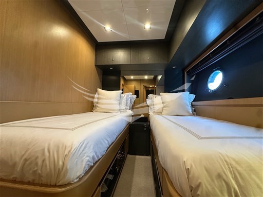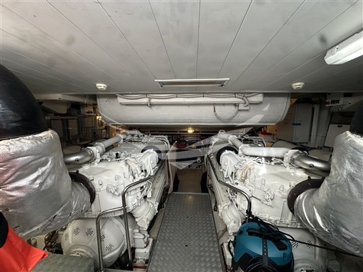 I motori, perfettamente mantenuti e in piena efficienza, permettono allo yacht di raggiungere una velocità massima di 38 nodi con un comfort acustico sorprendente.