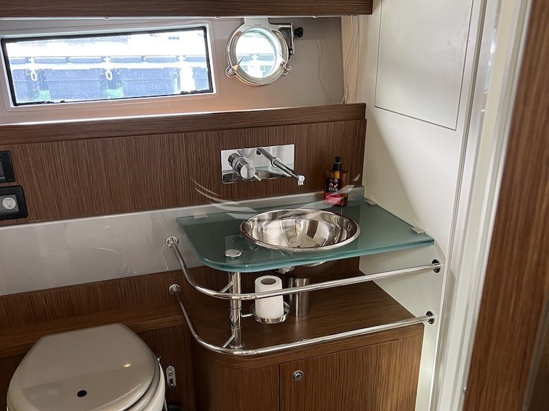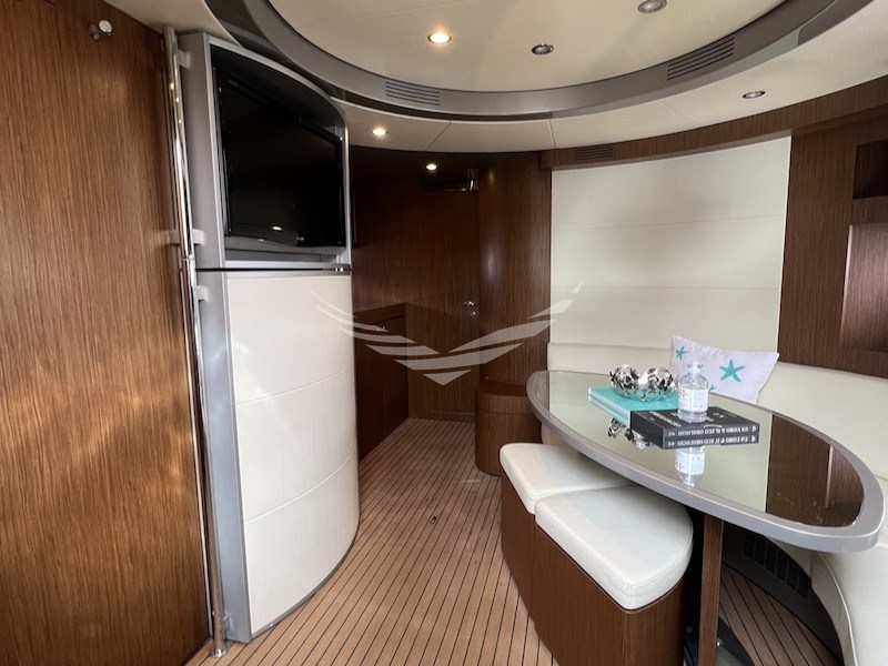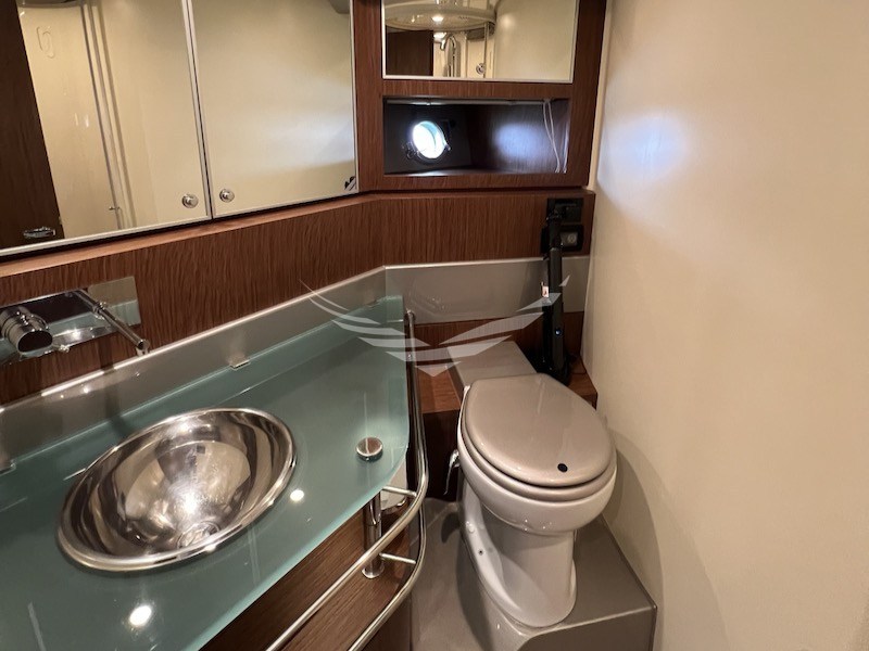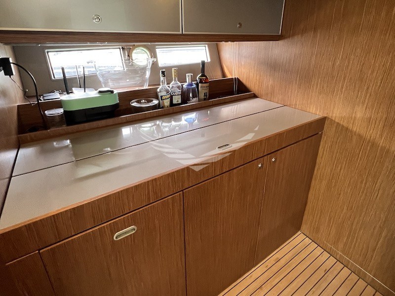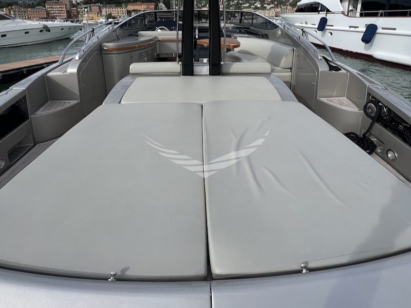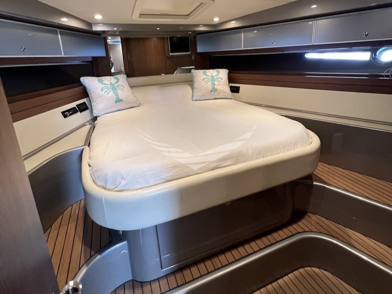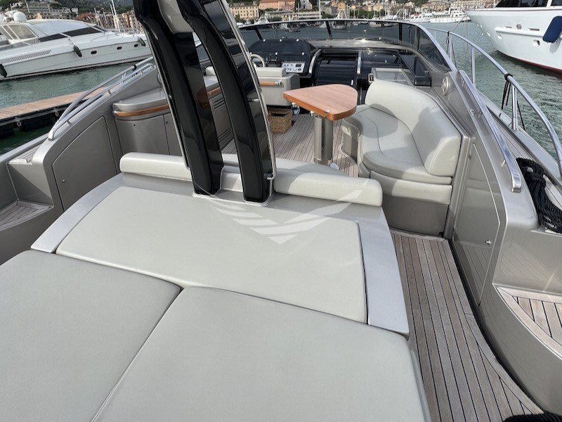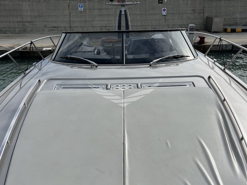 Coperta: Prendisole di prua e poppa con nuove cuscinerie; Pozzetto in teak con divani e tavolo pranzo; Mobile bar con frigorifero-piastra- icemaker; Sedile pilotaggio e passeggero; Capote elettrica. Sottocoperta: Cabina armatoriale a prua con bagno "en suite"; 2 Cabine ospiti con letti in piano con 1 bagno; Ampia dinette con divano e tavolo pranzo; Cucina completa con quattro fuochi vetroceramica, lavandino, lavastoviglie, frigorifero, congelatore, forno microonde.