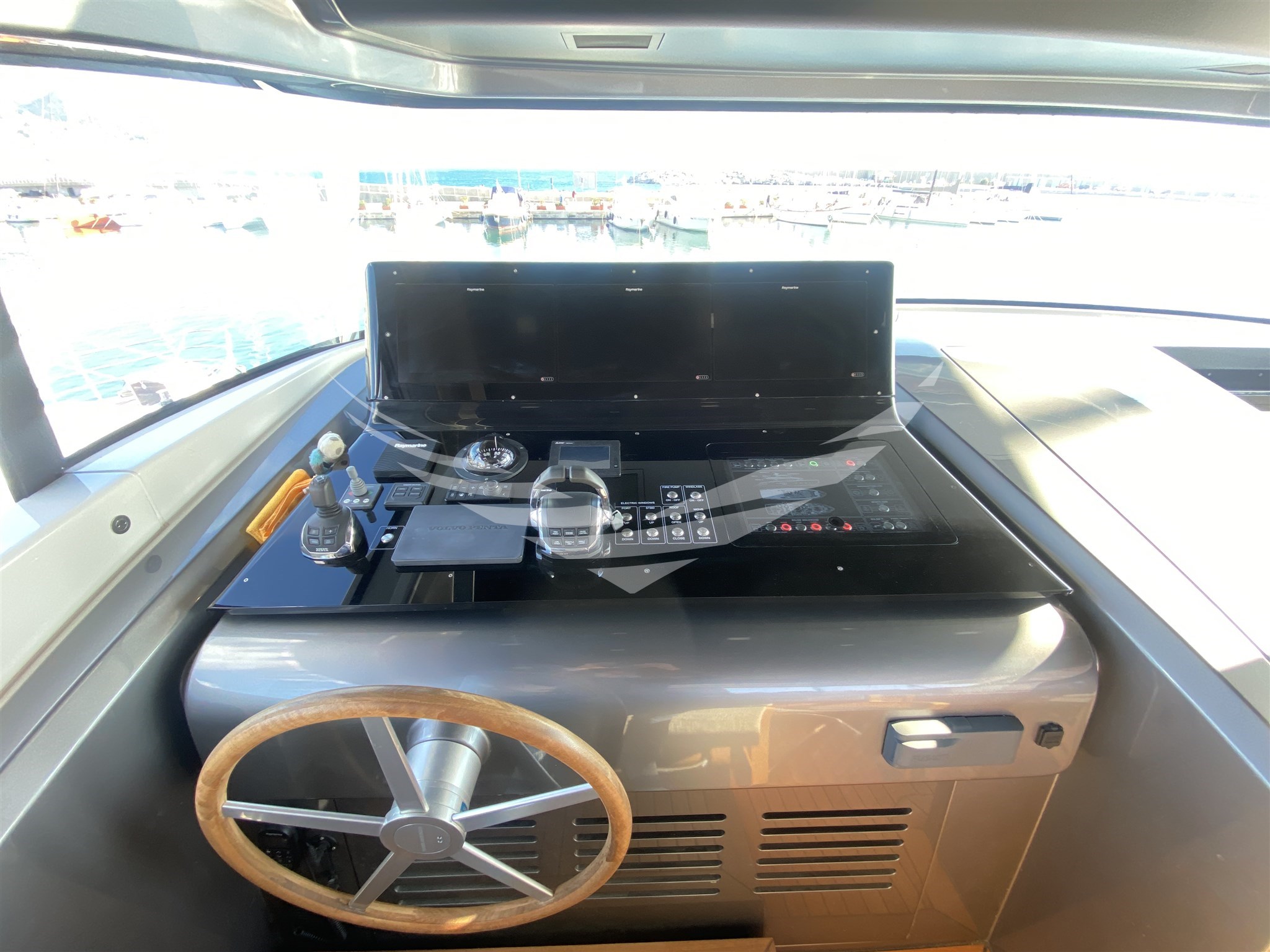 AIS, Angolo barra, Antenna radar, Bussola, Comando motori elettronico, Computer di bordo, Contametri catena, Contamiglia, Display, DSC vhf, Ecoscandaglio, GPS, Interfaccia, Joystick, Log, Luci di navigazione, Pilota automatico, Plotter, Plotter con antenna GPS, Radar, Radio VHF.