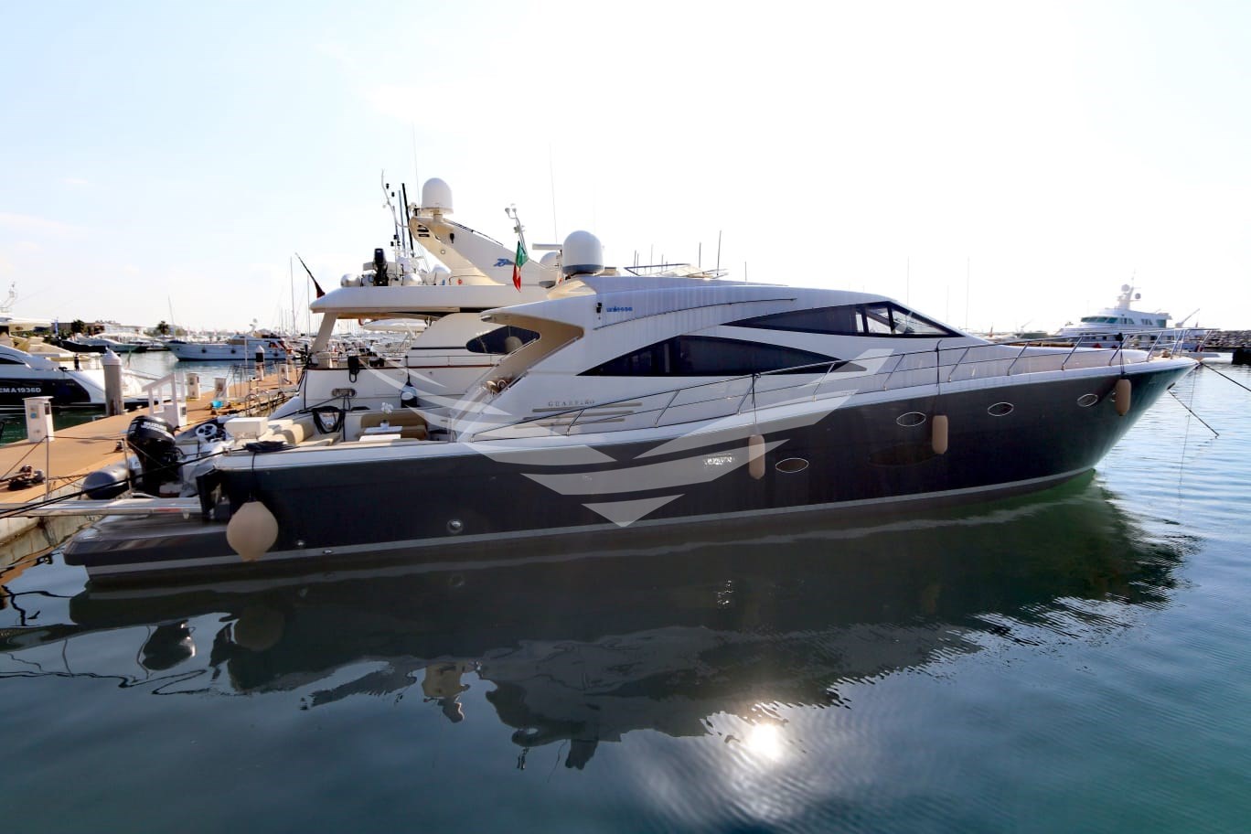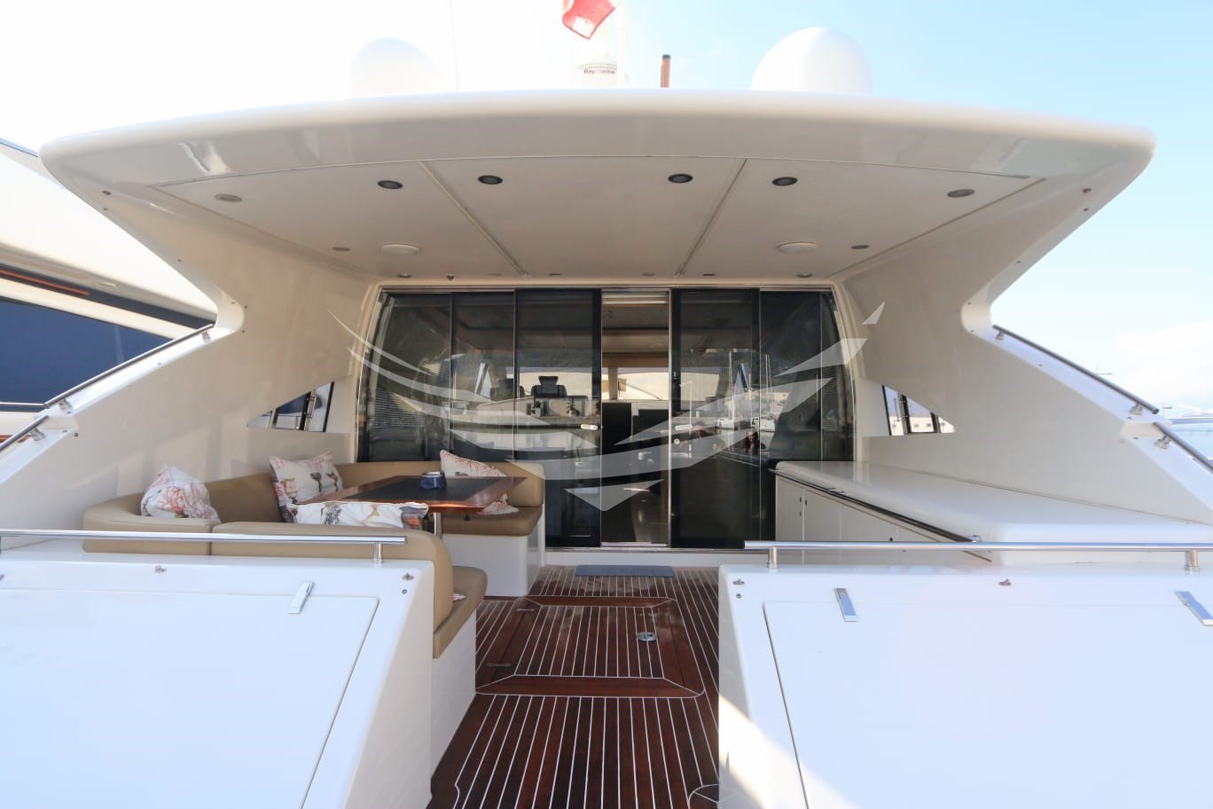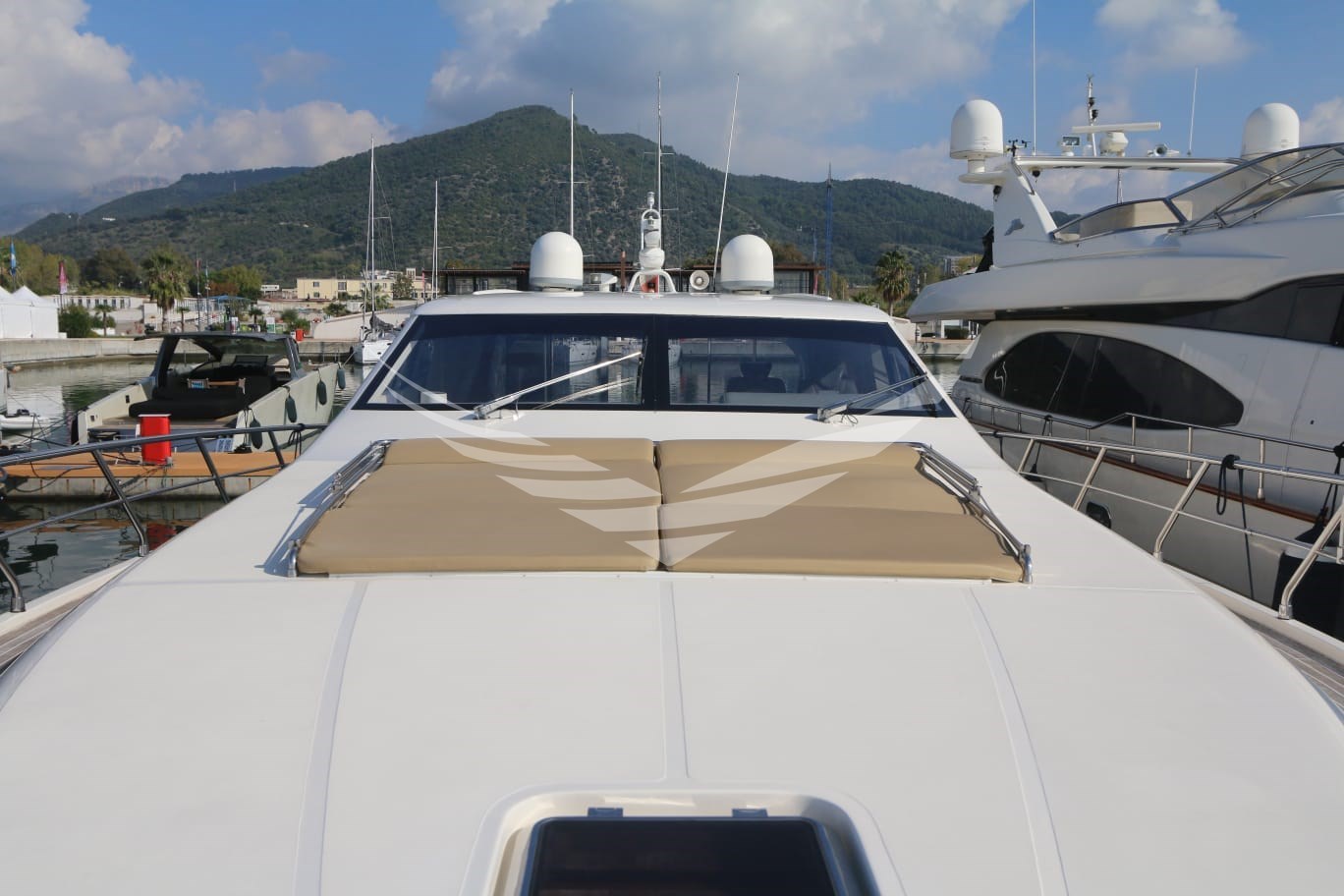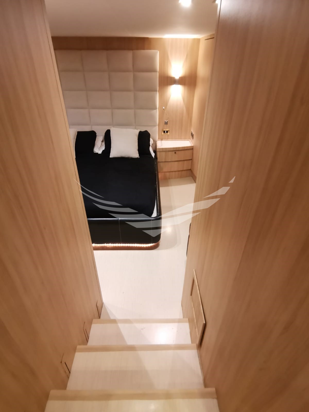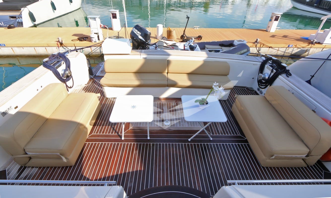 Allarme fumo/gas, Allarme motore, Allarme sentina, Ancora, Autoclave, Batterie, Camminamenti laterali in teak, Caricabatterie, Colorazione speciale, Doccia esterna, Elica di poppa - stern thruster, Elica di prua - bow thruster, Fari fissi a poppa, Faro orientabile, Flap elettrici, Hard top, Impianto antincendio, Indicatori Flaps, Lavaggio catena, Luci di cortesia, Luci subacquee, Passerella, Piattaforma, Pompa di sentina automatica, Porta ingresso, Pozzetto Teak, Presa 220V banchina, Presa acqua banchina, Raddrizzatore, Ripetitore strumentazione, Salpa Ancore Elettrico, Scaletta da bagno, Tavolo pozzetto, Tientibene con cancelletti, Tromba, Winch tonneggio di poppa, Winch tonneggio di prua.