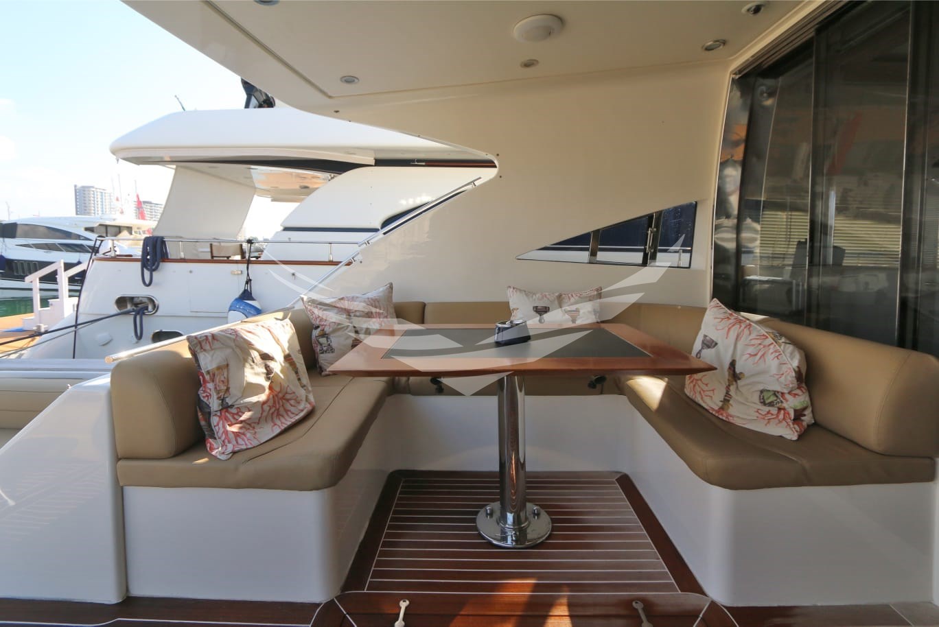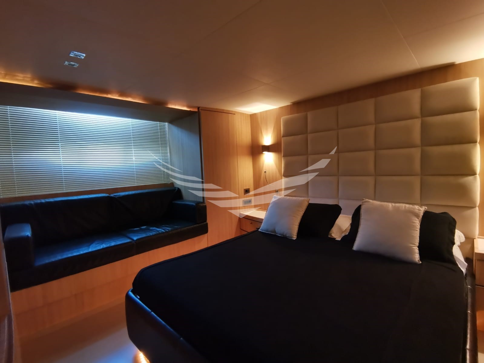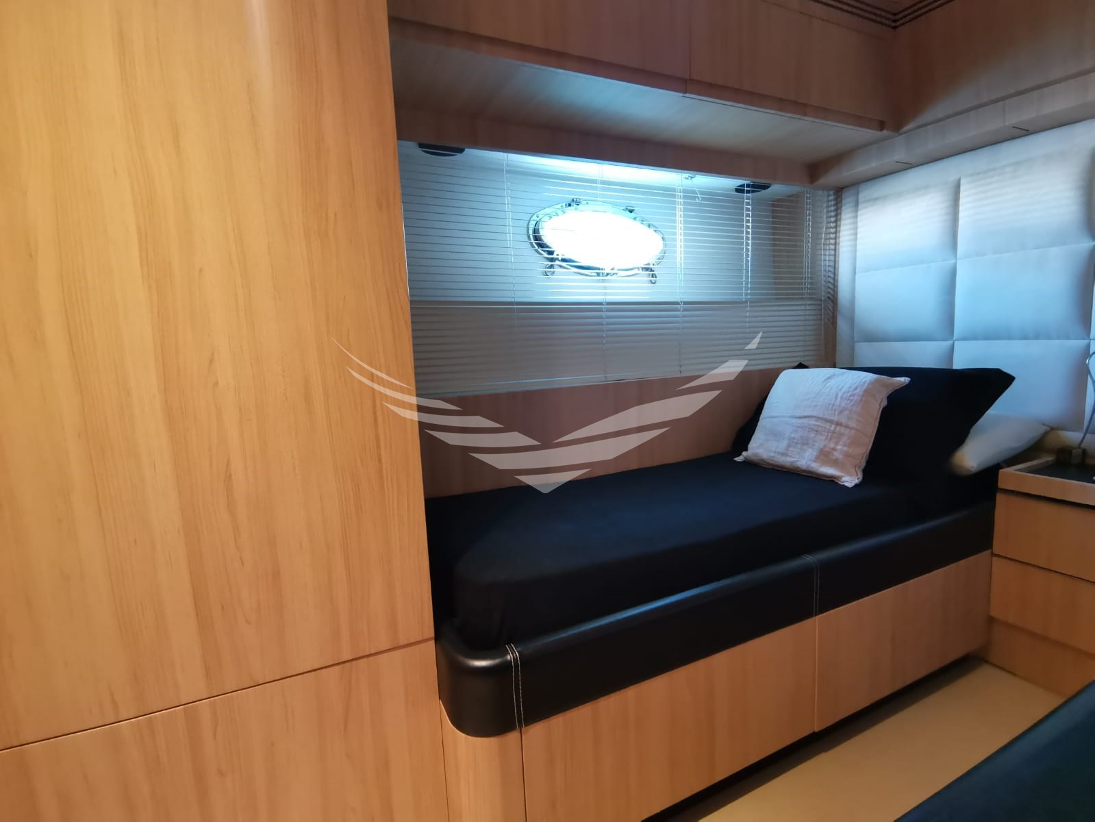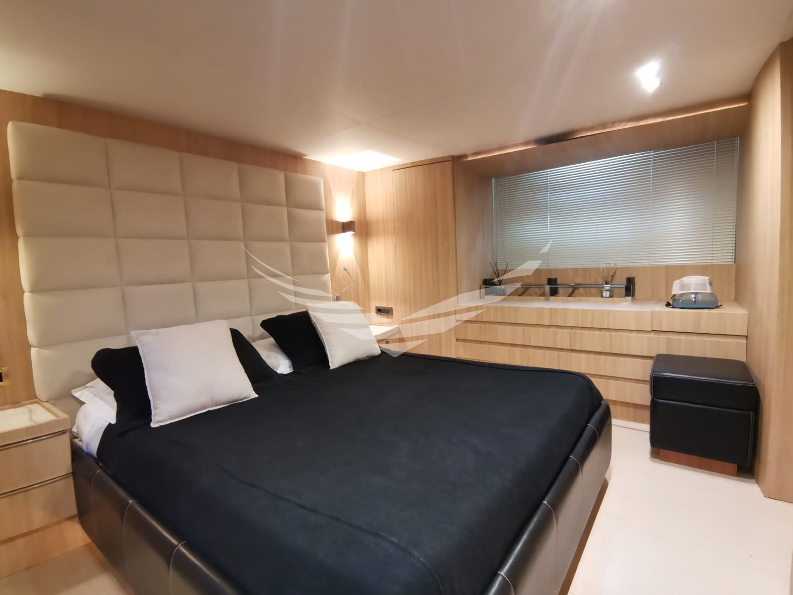 Allarme fumo/gas, Allarme motore, Allarme sentina, Ancora, Autoclave, Batterie, Camminamenti laterali in teak, Caricabatterie, Colorazione speciale, Doccia esterna, Elica di poppa - stern thruster, Elica di prua - bow thruster, Fari fissi a poppa, Faro orientabile, Flap elettrici, Hard top, Impianto antincendio, Indicatori Flaps, Lavaggio catena, Luci di cortesia, Luci subacquee, Passerella, Piattaforma, Pompa di sentina automatica, Porta ingresso, Pozzetto Teak, Presa 220V banchina, Presa acqua banchina, Raddrizzatore, Ripetitore strumentazione, Salpa Ancore Elettrico, Scaletta da bagno, Tavolo pozzetto, Tientibene con cancelletti, Tromba, Winch tonneggio di poppa, Winch tonneggio di prua.