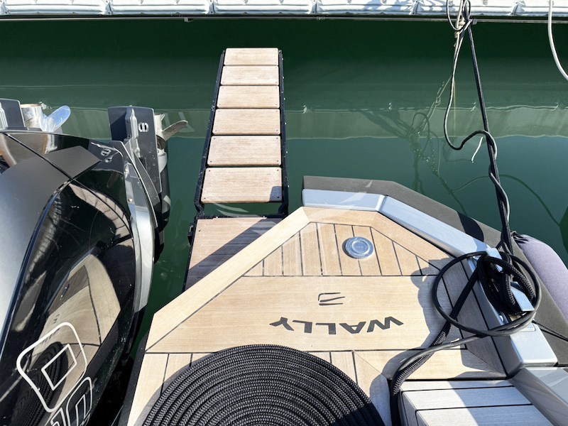 Il Wallytender X è la versione fuoribordo e la X sta per “euforia” che si genera a seguito delle prestazioni elevatissime garantite dai 3 motori fuoribordo che spingono lo scafo oltre i 50 nodi di velocità massima.