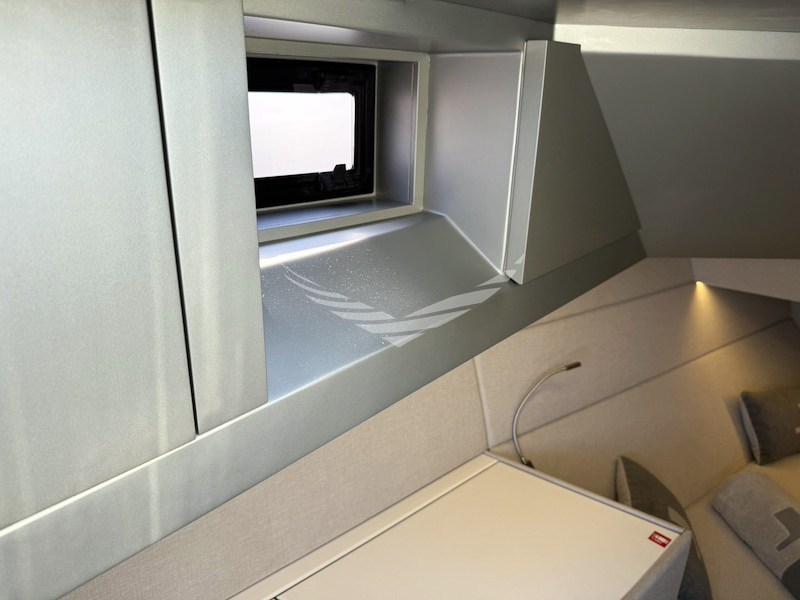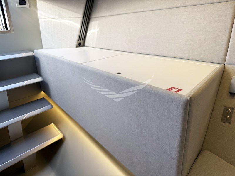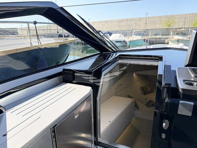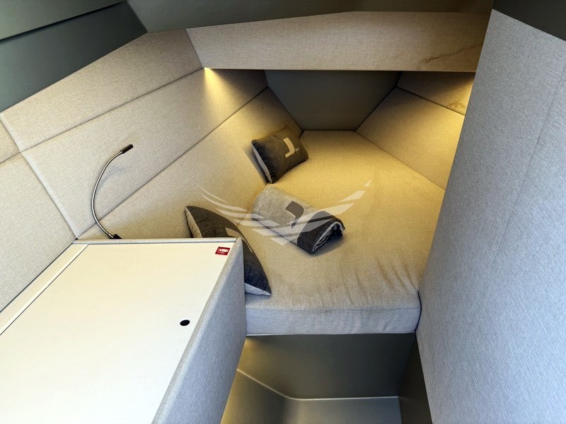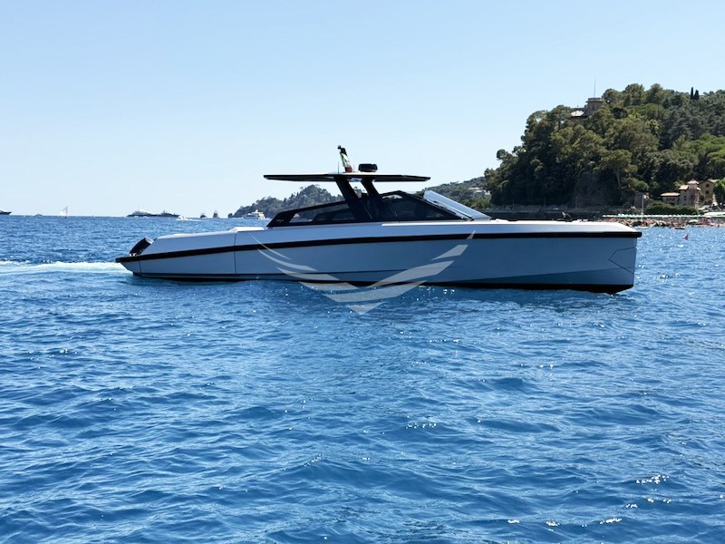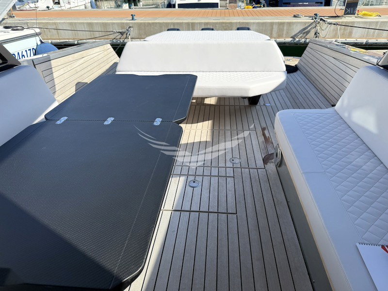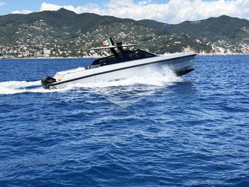 Le caratteristiche salienti di questa dayboat sono la straordinaria manovrabilità dovuta alla carena a V profonda estremamente bilanciata e la versatilità degli spazi del pozzetto che da accogliente dinette si trasforma in un grande beach club grazie alle murate abbattibili che permettono, ad armatore ed ospiti, di godersi la vita en-plain air a contatto diretto con il mare.